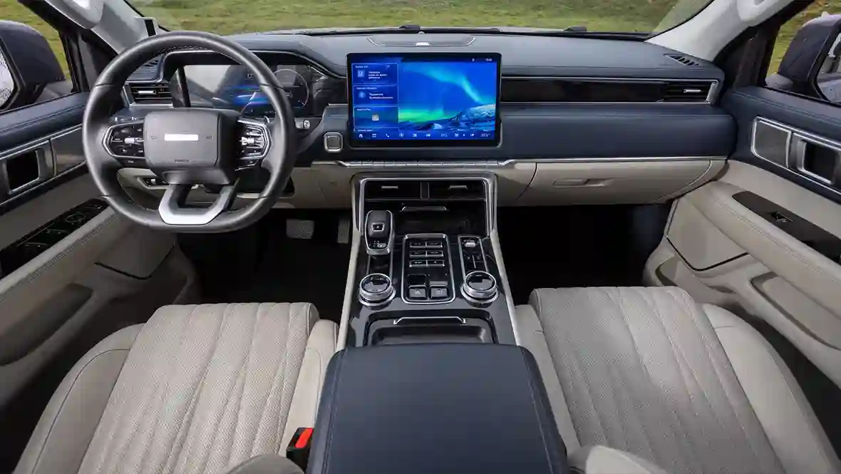 Но чего бы покупатели подобных машин точно не оценили — чрезмерной цифровизации. Главные настройки, конечно же, завязаны на 14,6-дюймовый экран мультимедийного комплекса, но пульт фар привычно находится на подрулевом рычажке, блок настройки зеркал — на двери, удобный рычаг трансмиссии — на центральном тоннеле, а климат-контроль полностью управляется механическими клавишами.