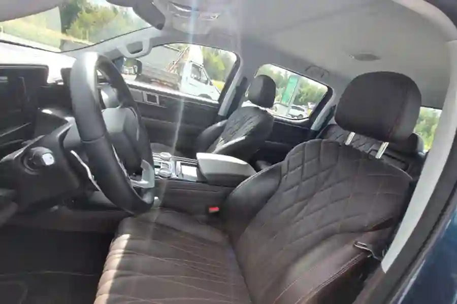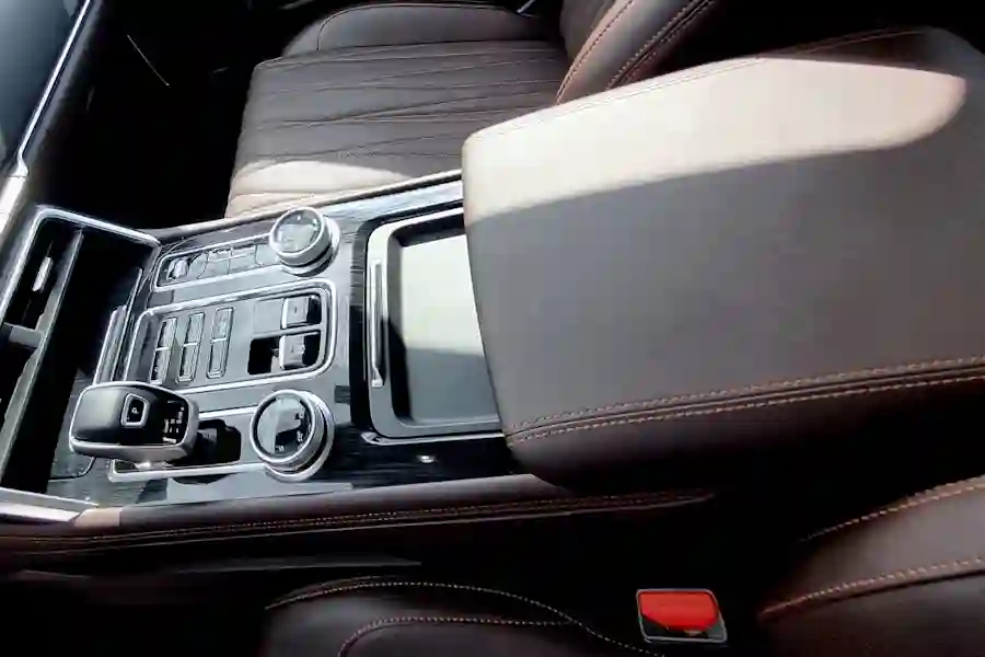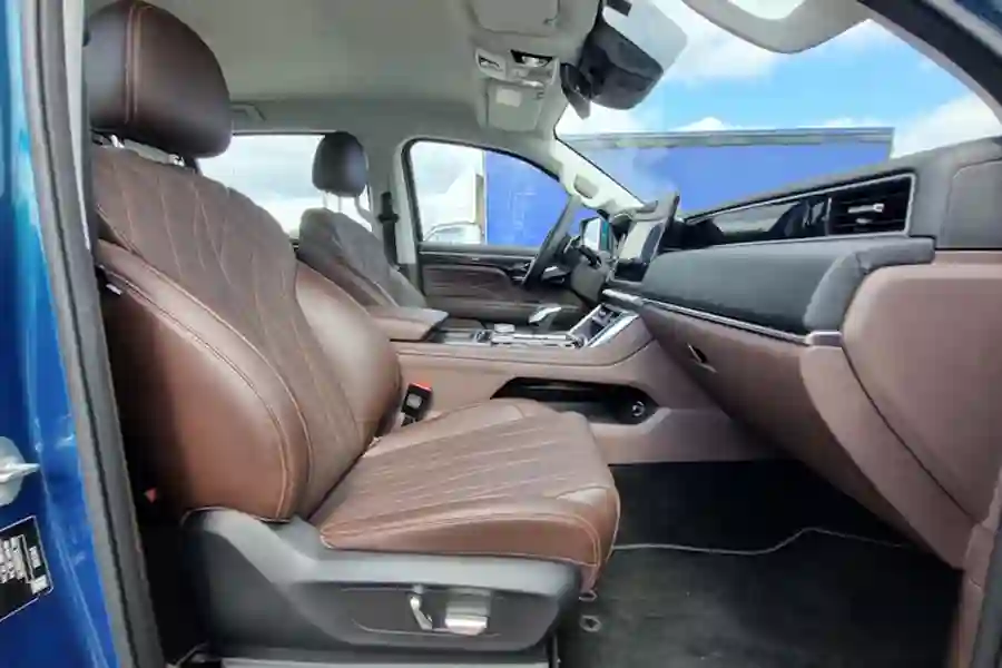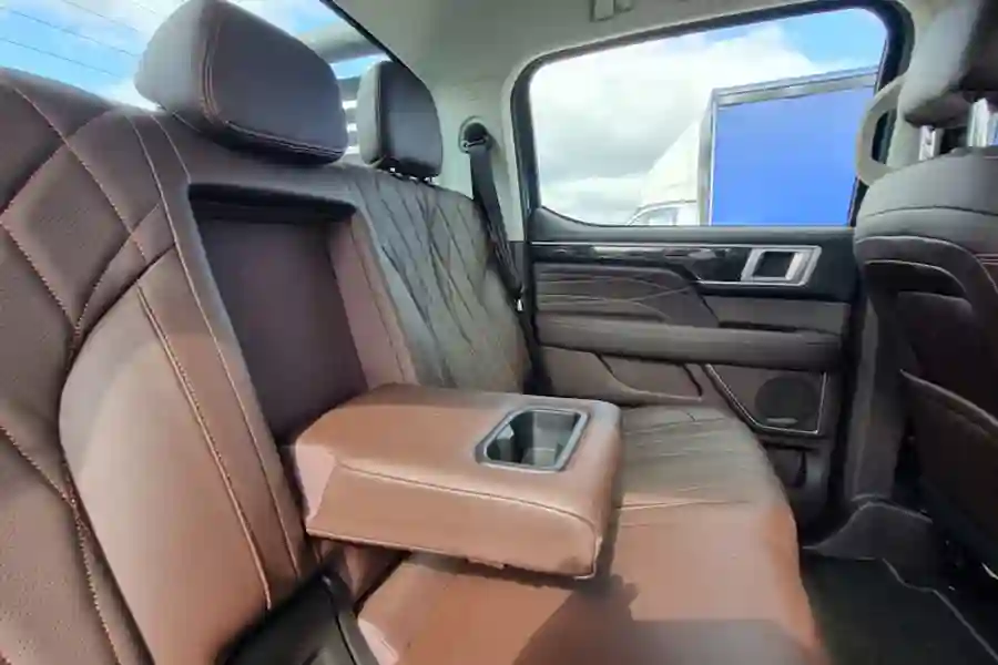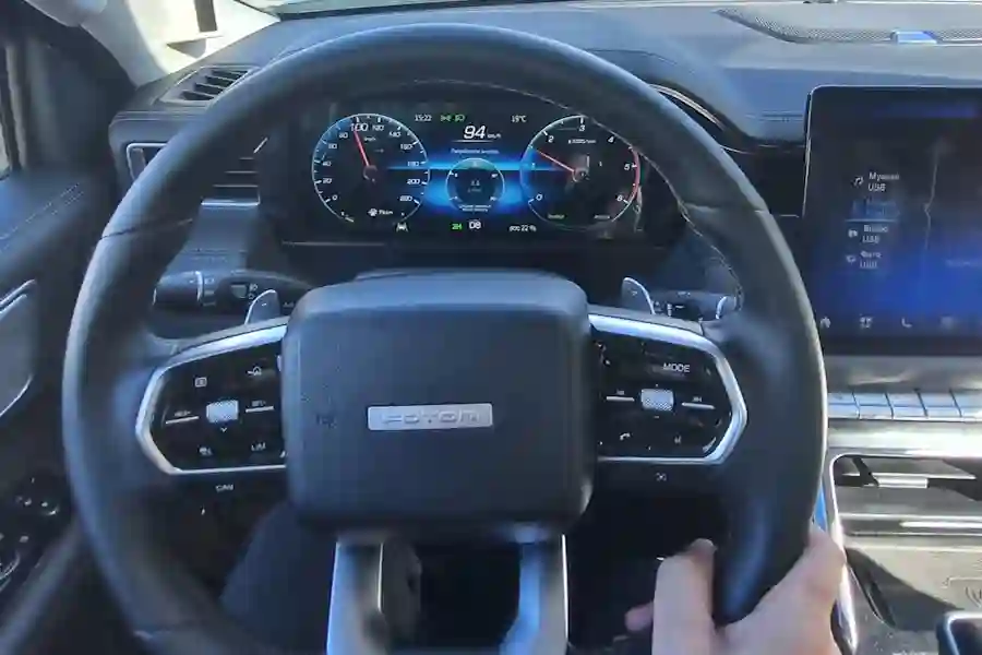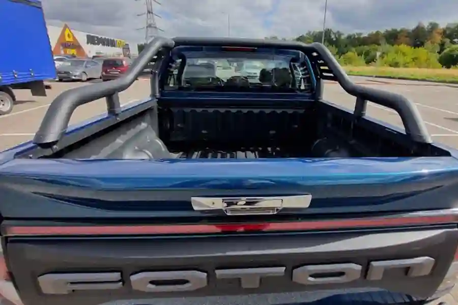 Салон FOTON TUNLAND V7 заслуживает отдельного внимания. Очень большая кабина порадует простором даже задних пассажиров. По сути, пикап может подойти для длительных семейных путешествий. Качественные материалы отделки, очень удобные кресла водителя и переднего пассажира на электрорегулировках. Подлокотник есть как у задних пассажиров, так и для водителя. Масса розеток USB, беспроводная зарядка для смартфона.