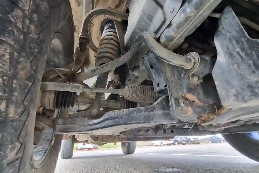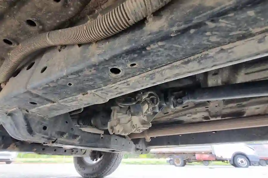 Подвеска FOTON TUNLAND V7 без каких-либо сюрпризов. Спереди независимая рычажная, сзади стоят рессоры и неразрезной мост. Сразу хочется отметить, что обычно задняя подвеска любого пикапа очень жестко отрабатывает на любых неровностях, особенно лежачих полицейских. Однако, здесь рессоры такой конструкции, что машина уже откровенно не "козлит" и ехать приятно даже с пустым кузовом.