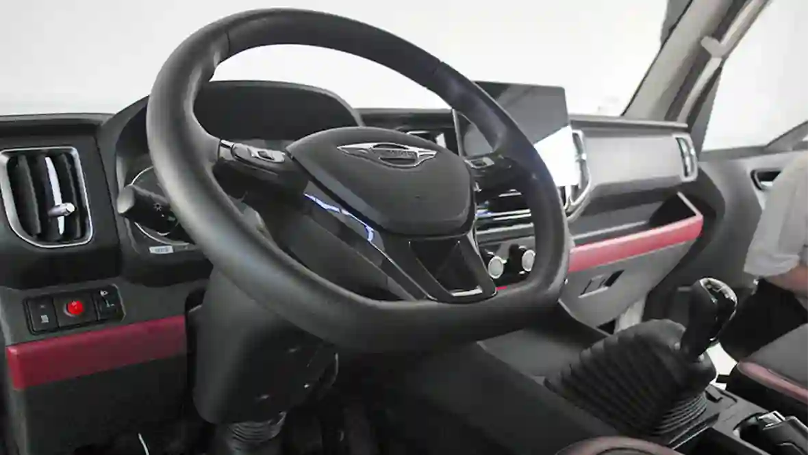 Комплектация кабины включает дневные ходовые огни, электростеклоподъемники, обогрев зеркал заднего вида, аудиосистему FM+MP3, регулировку сиденья водителя по 8-ми направлениям, механическую амортизацию, вентиляцию и подогрев. На крыше смонтирован обтекатель.
