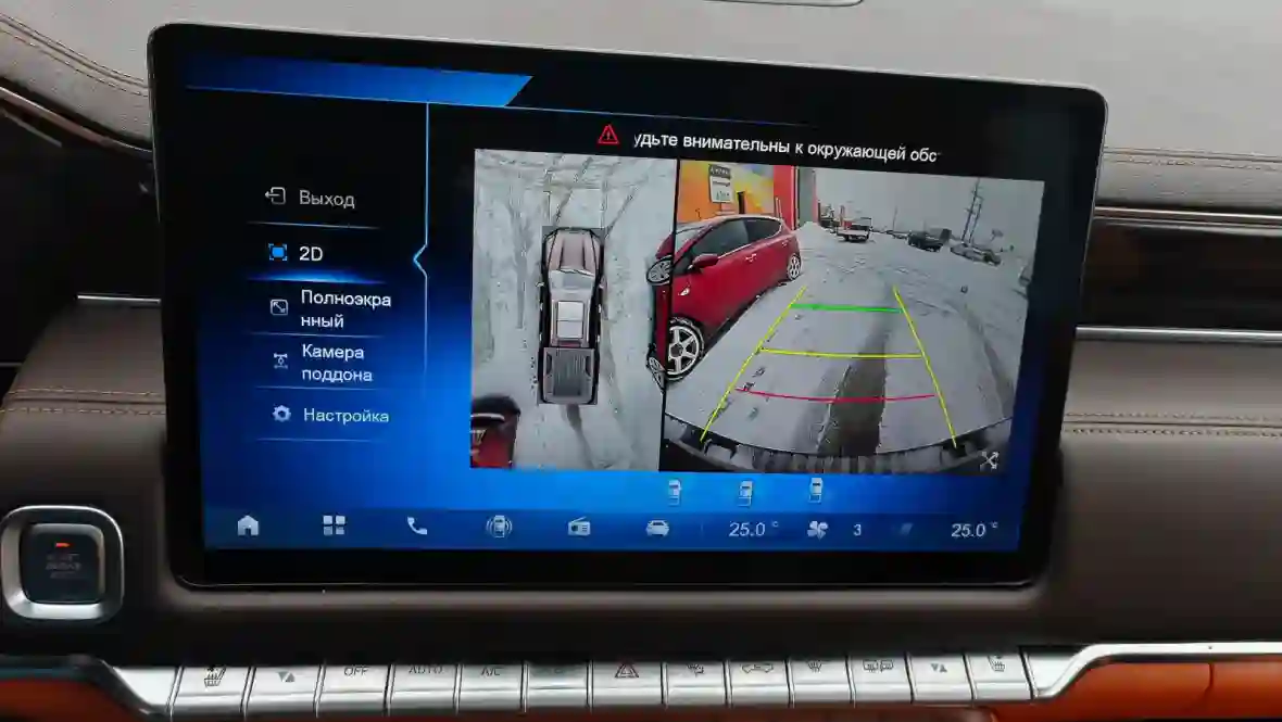 Учитывая внушительные габариты машины и связанную с этим обзорность, близкую к «грузовой», определенную осторожность следует соблюдать при маневрировании на ограниченных пространствах. Наличие камер и датчиков облегчает такое маневрирование, но не в плохую погоду, когда их объективы могут быть «ослеплены» из-за грязи или снега.